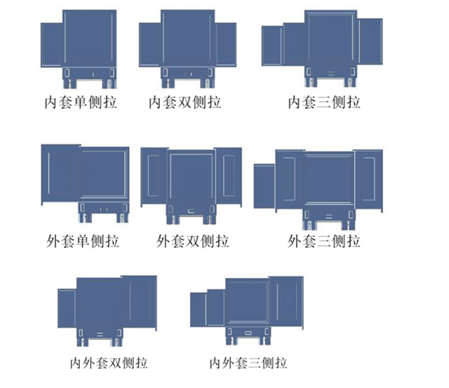 目前常用的主要有內套拉箱、外套拉箱,和內外套拉箱形式。