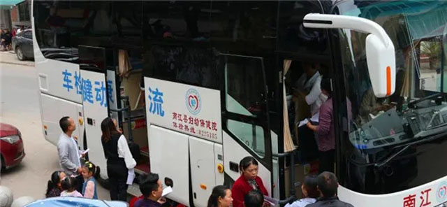 婦幼保健院的體檢車醫護人員上山下鄉,下到社區。為人民群眾開展國家免費婚前醫學檢查與孕前優生健康檢查。原來是群眾自己到醫院進行免費檢查的。為了疫情防控需要,減少人員到醫院聚集避免交叉感染。體檢車上門服務,為提高婚檢率、孕檢率開辟了新路子。體檢車很受歡迎,群眾絡繹不絕地前來,自愿接受婚前醫學檢查、孕前優生健康檢查。