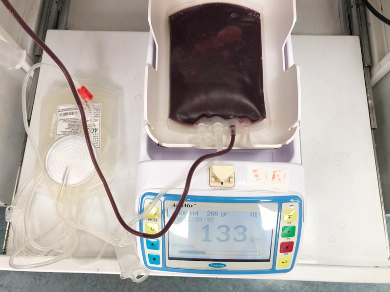 首先獻血時候對血液的初次篩選,采集無名指的血,是因為無名指一是滑液囊不向手掌深部延伸;大拇指跟小指頭的肌腱活動范圍廣,發生感染的話炎癥會范圍大。無名指在五指中不如其他手指的的功能大,所以都在無名指上采血。還有采血過程中,獻血屋的工作人員會在手臂位置綁著一條白色的帶子。這個叫壓脈帶,一次性止血帶。采血過程中一直綁著壓脈帶是有助于減緩血液回流心臟的速度,采血得到順暢效果。獻血時候血袋在采血稱上面不停的搖擺,是因為血袋里有抗凝劑。采血時候如果不用這個措施血液會發生凝固效果,采血稱一定頻率不停搖擺,使抗凝劑與血液充分混合,從而達到使血液不凝固的目的。還有在采血過程中還有三個試管。采集好的血液會送往血站的成分供儲科進行分離制備,為最大程度確保每一袋血液是安全的,而試管則會被送到成分檢測科進行血液檢測。血站要對所有采集回來的血液標本進行丙氨酸氨基轉移酶(ALT)、血型檢測、乙型肝炎病毒、丙型肝炎病毒、獲得性人類免疫缺陷病毒(HIV)、梅毒螺旋體檢測。每個血袋都有條形碼,標識以及可追溯性。同一獻血碼至少在50年內不得重復。