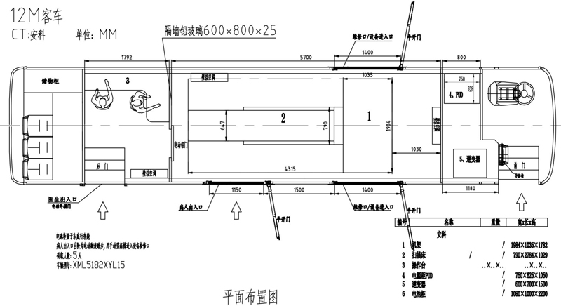 外型尺寸mm 12000×2550×3600