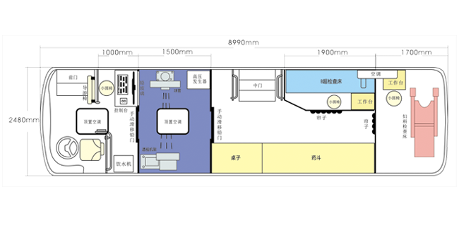 車載DR體檢車功能卻很齊全,車上配裝X光機(jī)、心電超聲檢查、電測聽室、全自動(dòng)生化分析儀以及檢查床、冰柜、空調(diào)和紫外線消毒燈等先進(jìn)醫(yī)療儀器設(shè)備。