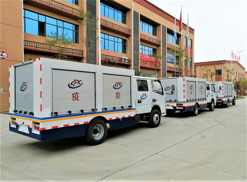 防疫車以汽車底盤為基礎,加裝大容量的罐體,內部加做防腐涂層,可裝運和噴灑各種藥劑,是衛生防疫消殺的理想專用車輛。
